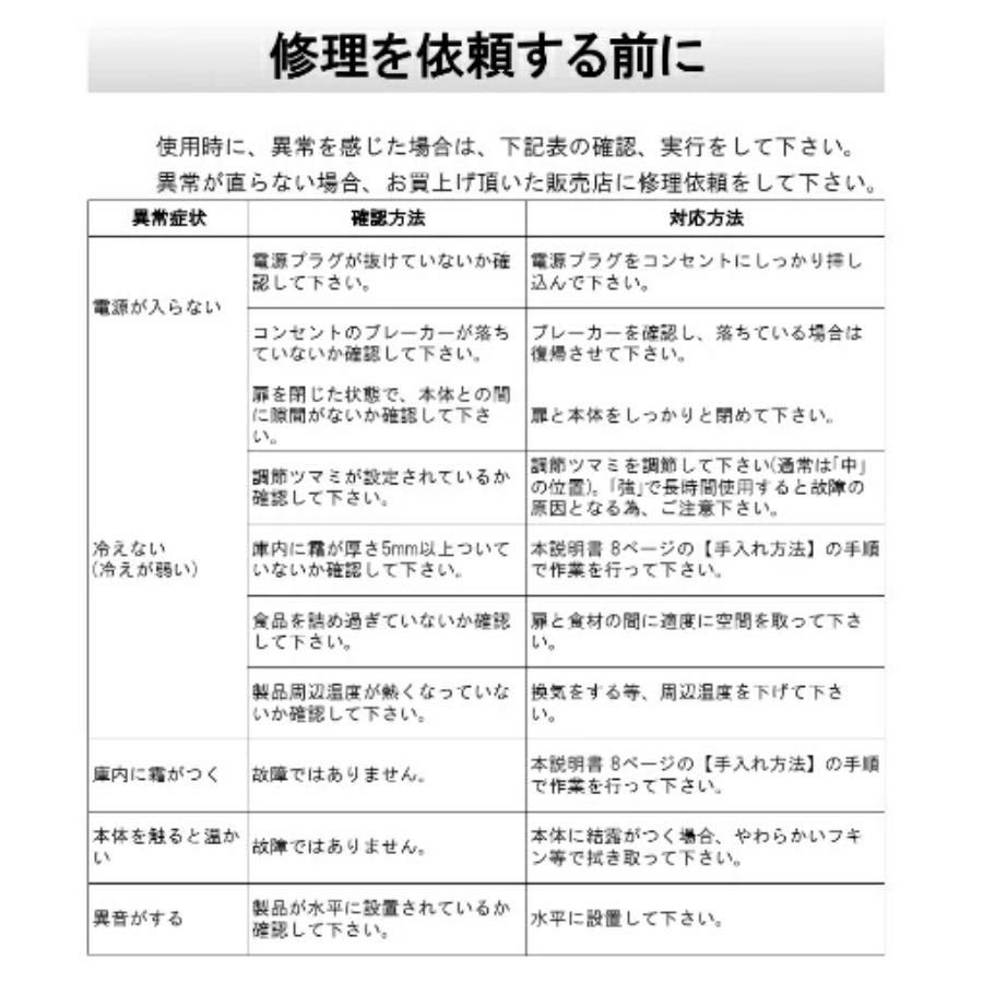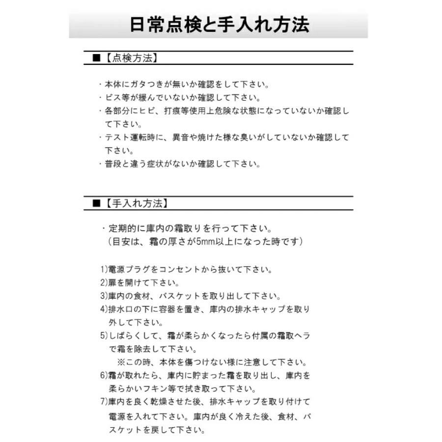 ・庫内温度:-18度以下(外気温30℃ 無負荷直射日光を受けない状況下)