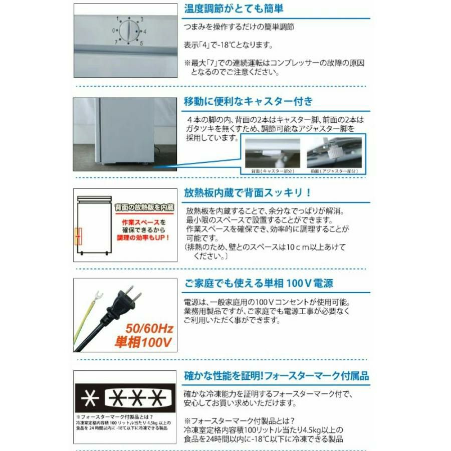 ・庫内温度:-18度以下(外気温30℃ 無負荷直射日光を受けない状況下)