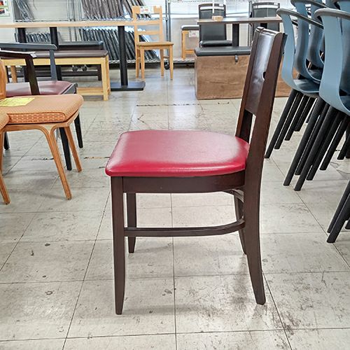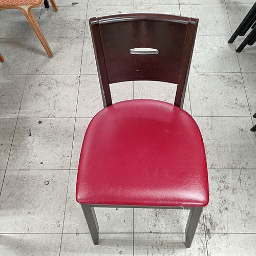 中古洋風イス ダークブラウン 座赤レザー,中古イス,中古椅子,中古いす