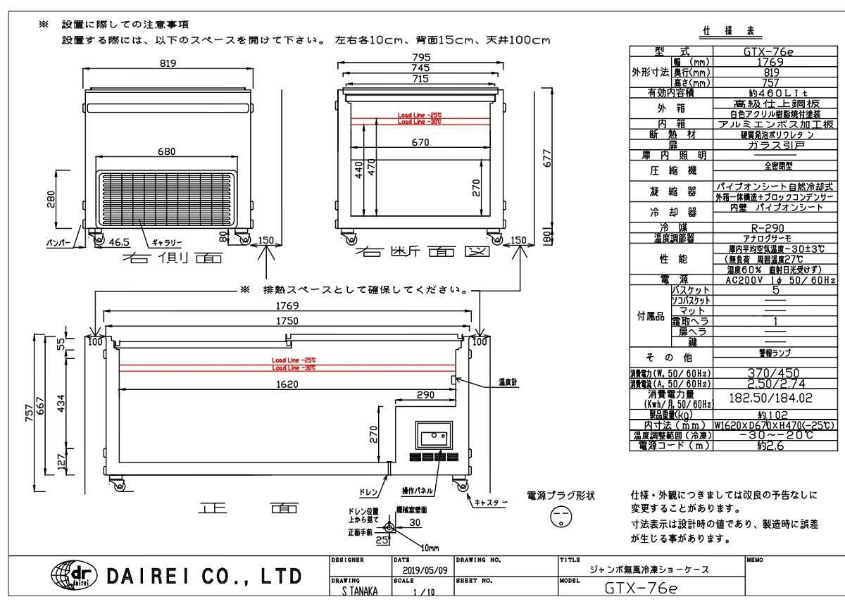商品名:GTXシリーズ ジャンボ無風冷凍ショーケース GTX-76e
