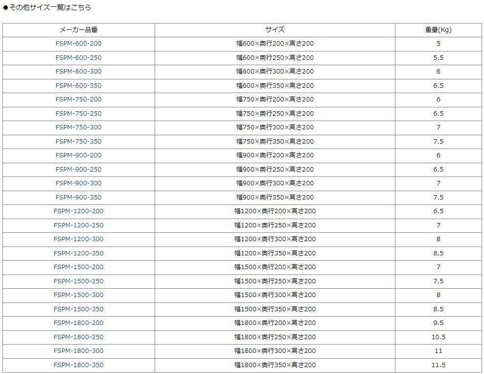 | FSPM-1200-350 | 幅1200×奥行350×高さ200 | 8.5 |