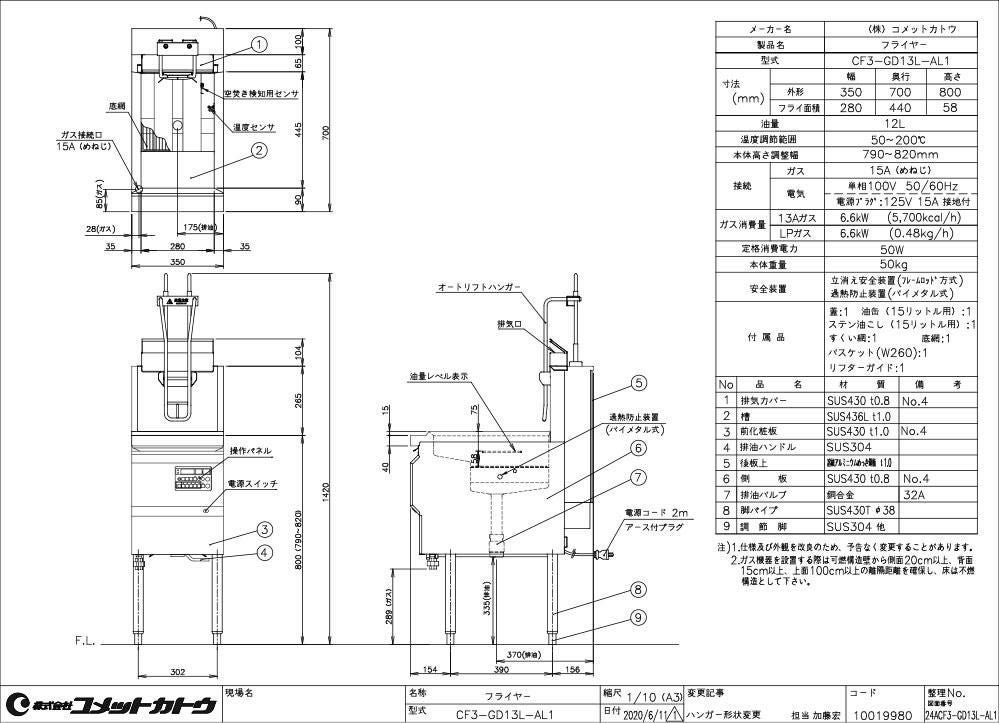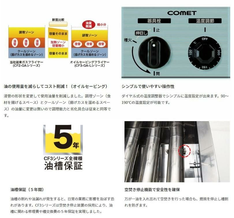 商品名:コメットカトウ ガスフライヤー オイルセービングフライヤーCF3-GD13L