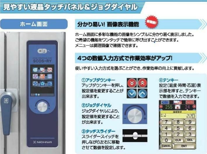 SCOS-661RY-L(R) 【ニチワ電機】電気スチームコンベクションオーブン 架台付 幅900×奥行895×高さ1605mm (50/60Hz)