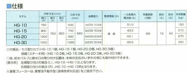 【ニチワ】 電気ハースグリラー 三相200V HG-20L(左給排水) HG-20R(右給排水) 幅1200×奥行750×高さ850mm