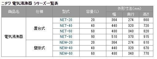 ニチワ 置台式電気湯沸器 貯湯式 90リットル 沸上時間105分 NET-90 幅510×奥行370×高さ915