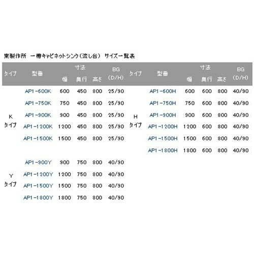 AP1-1200Y 【東製作所】 一槽キャビネットシンク 幅1200×奥行750×高さ800(mm)