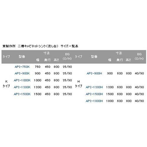 AP2-1000K【東製作所】二槽キャビネットシンク 幅1000×奥行450×高さ800(mm)