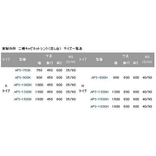 AP2-1500K【東製作所】二槽キャビネットシンク 幅1500×奥行450×高さ800(mm)