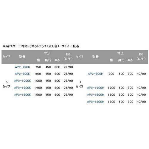 AP2-900H【東製作所】二槽キャビネットシンク 幅900×奥行600×高さ800(mm)