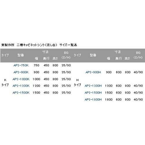 AP2-1800H【東製作所】二槽キャビネットシンク 幅1800×奥行600×高さ800(mm)