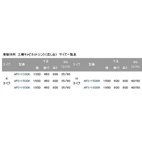 【東製作所】三槽キャビネットシンク AP3-1500K 幅1500×奥行450×高さ800mm