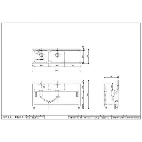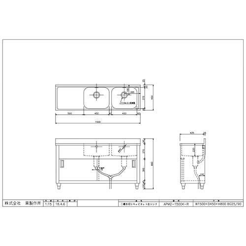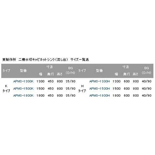 APM2-1500K【東製作所】二槽水切キャビネットシンク 幅1500×奥行450×高さ800(mm)