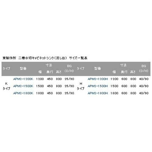 APM2-1500H【東製作所】二槽水切キャビネットシンク 幅1500×奥行600×高さ800(mm)