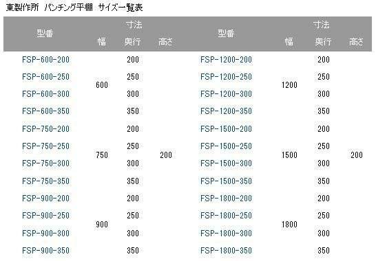 【東製作所】パンチング平棚 FSP-1800-350 幅1800×奥行350×高さ200mm