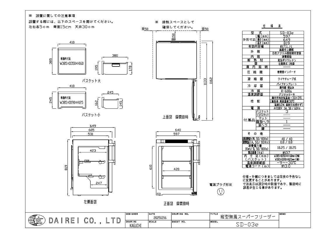 商品名:SD-03e ダイレイ 縦型スーパーフリーザー