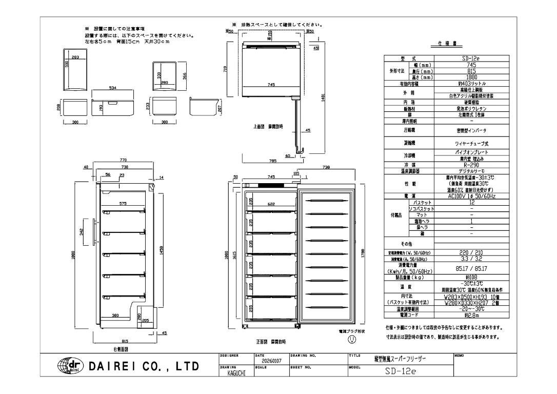 商品名:SD-12e ダイレイ 縦型スーパーフリーザー