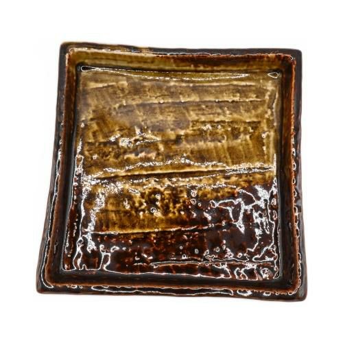 【飲食店定番】飴釉掛分け砂目 正角切立向付 15.8×15.8×2.5(cm)