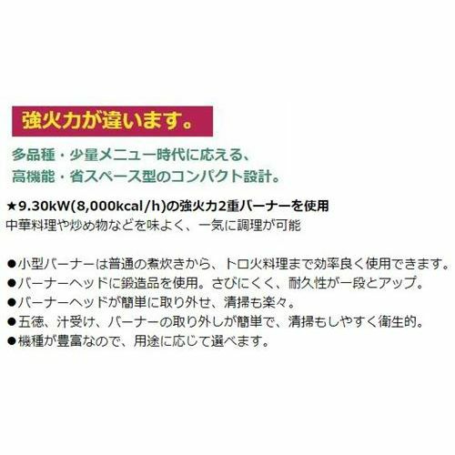 9.30kW(8,000kcal/h)の強火力2重バーナーを使用