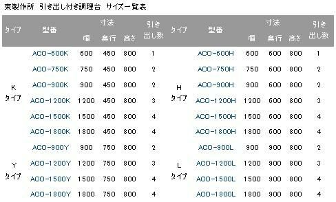 【東製作所】引き出し付き調理台 ACO-600K 幅600×奥行450×高さ800mm