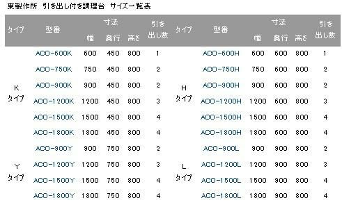 【東製作所】引き出し付き調理台 ACO-900H 幅900×奥行600×高さ800mm