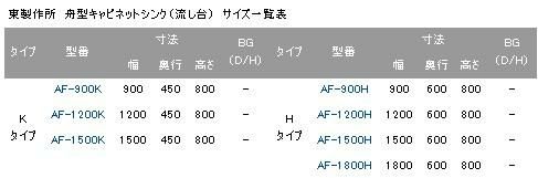 【東製作所】舟形キャビネットシンク AF-1200K 幅1200×奥行450×高さ800mm