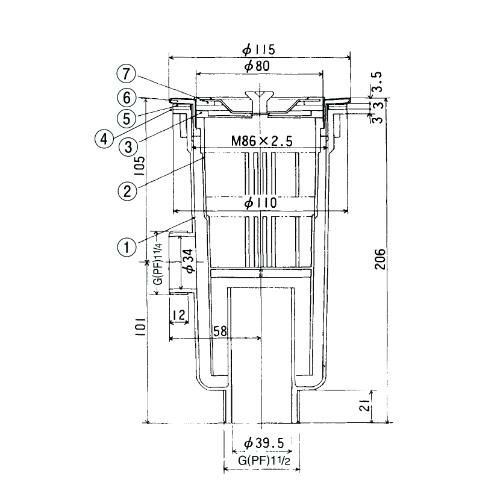 仕様4:適合排水口外径:Φ115mm