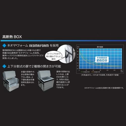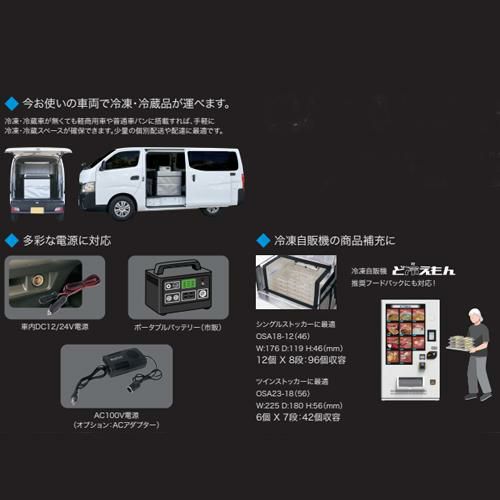 車内電源で軽商用車や普通車バンで冷却輸送が可能となります。