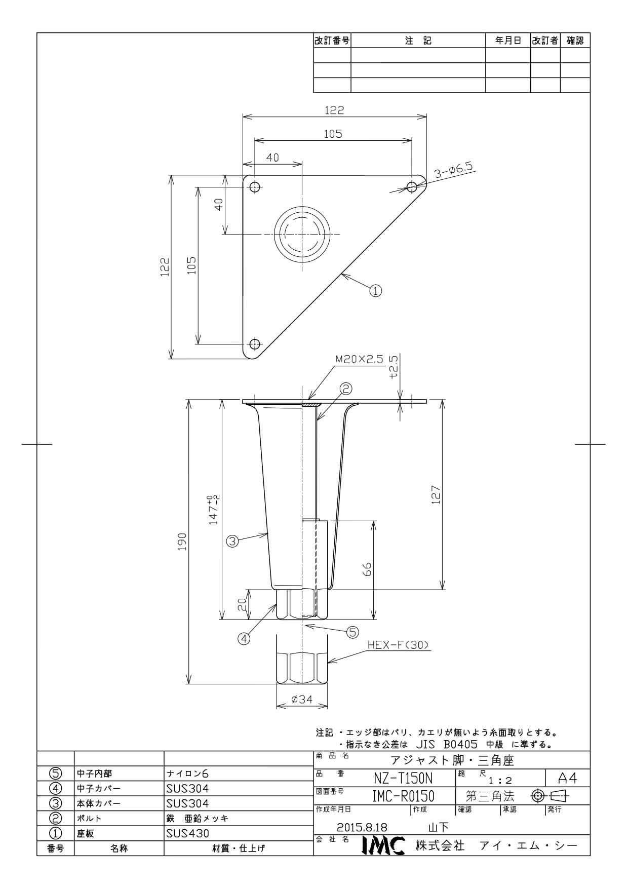 商品名:NZ-T150N 新型キャビネット脚 150mm 三角座板