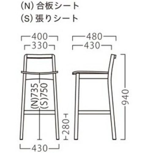 | サイズ | 幅400×奥行480×高さ940 シート高735(mm) |