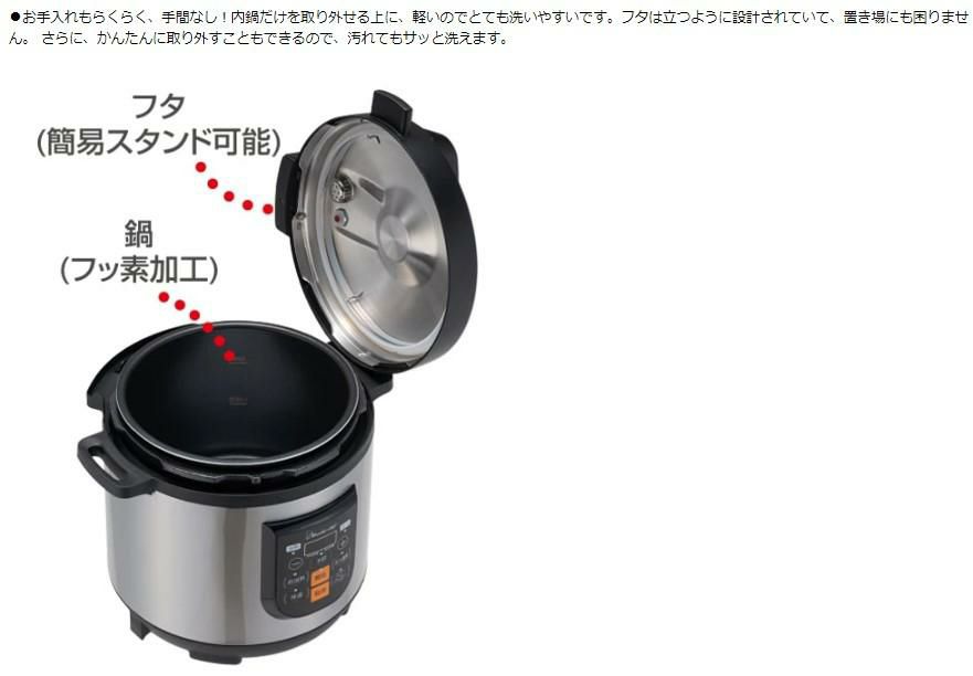 主材質:蓋・本体外郭/ステンレス PP、内釜/アルミニウム・フッ素加工