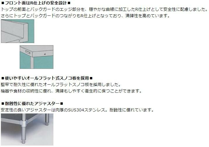 機器や食材の収納性に優れ、清掃もしやすく衛生的に保つことができます。