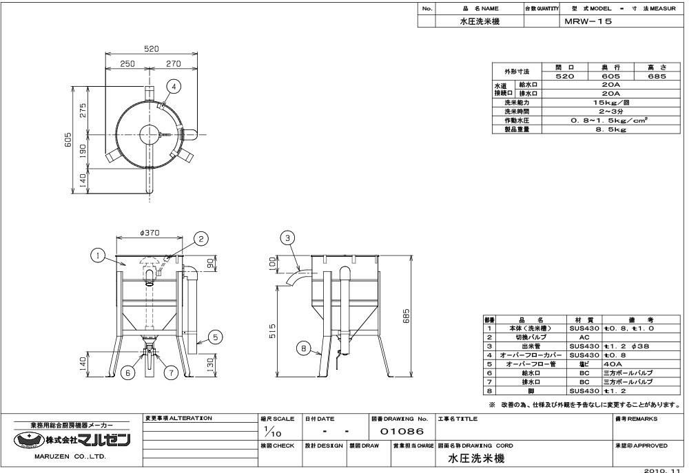 【マルゼン】水圧洗米機 MRW-15 幅520×奥行605×高さ685mm