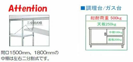 間口1500、1800の中棚は左右二分割式棚です。