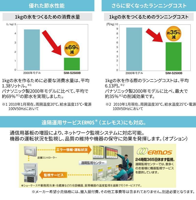 【パナソニック】キューブアイス製氷機65kg SIM-AS6500 (旧:SIM-S6500B) 幅630×奥行500×高さ850mm 単相100V