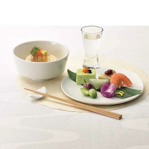 露のように澄み渡る白がテーマ。料理の色をより艶やかに際立たせるやさしくすべてを包み込む無垢の世界。