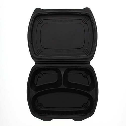 テイクアウト専用の本体・蓋一体型の容器です。植物素材を一部配合した環境対応商品です。