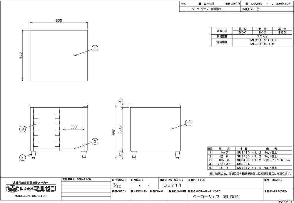 【マルゼン】ベーカリーオーブン専用架台 MBK-5