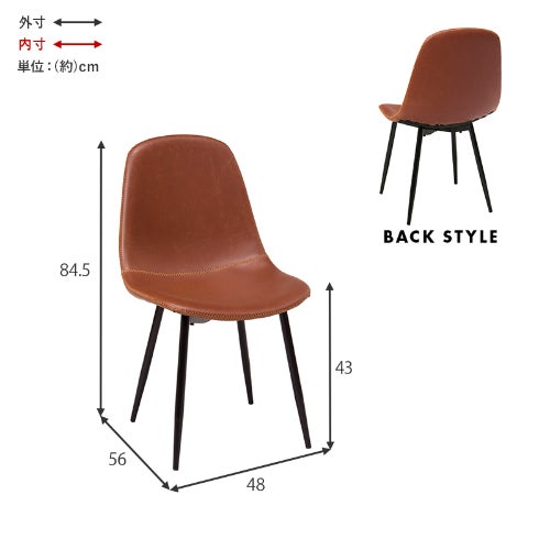 本革をリアルに再現した合成皮革を使用。ヴィンテージ調のダイニングチェアーです。