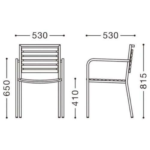 寸法:幅530×奥行530×高さ815、SH410、ひじ掛け迄の高さ650(mm)