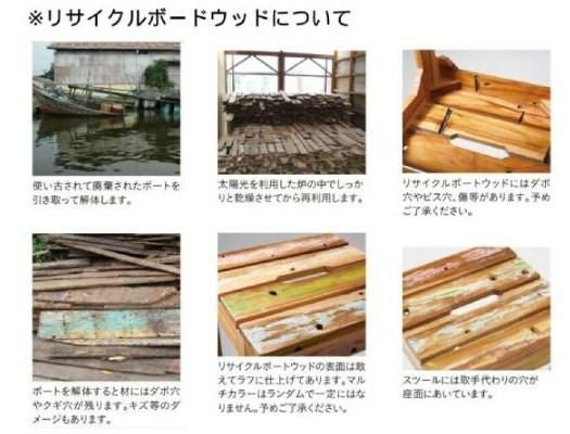 主材:リサイクルボートウッド・リサイクルボートウッド調塗装・ マルチカラー 天然木(チーク材)・クリア塗装