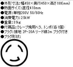 【ニチワ】電気クレープ焼器 1連 単相200V CM-410H 幅450×奥行450×高さ180mm