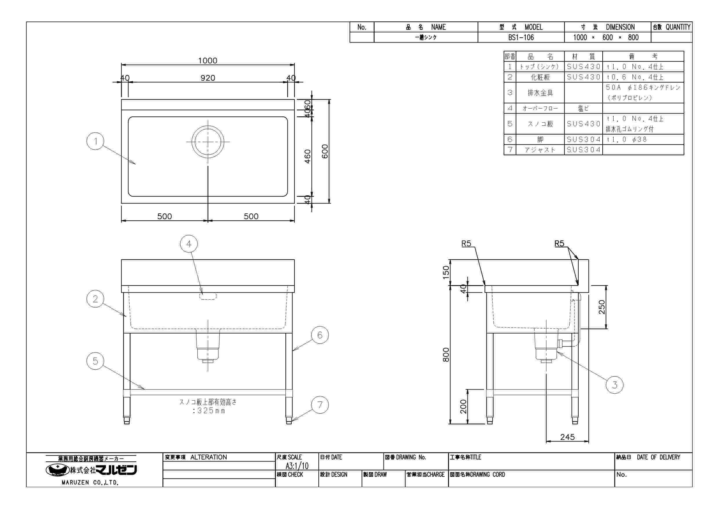 外形寸法:幅1000×奥行600×高さ800(mm)