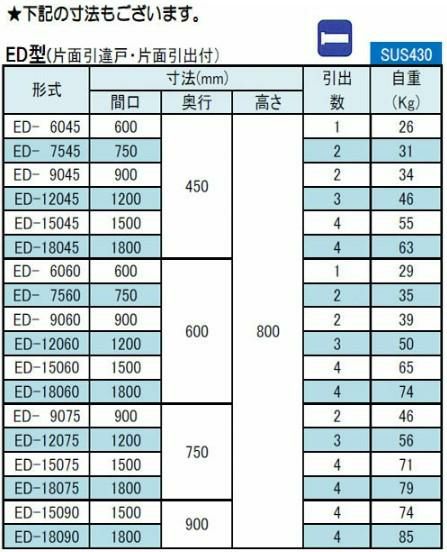 | サイズ | 幅1200×奥行450×高さ800 [ED-12045] |