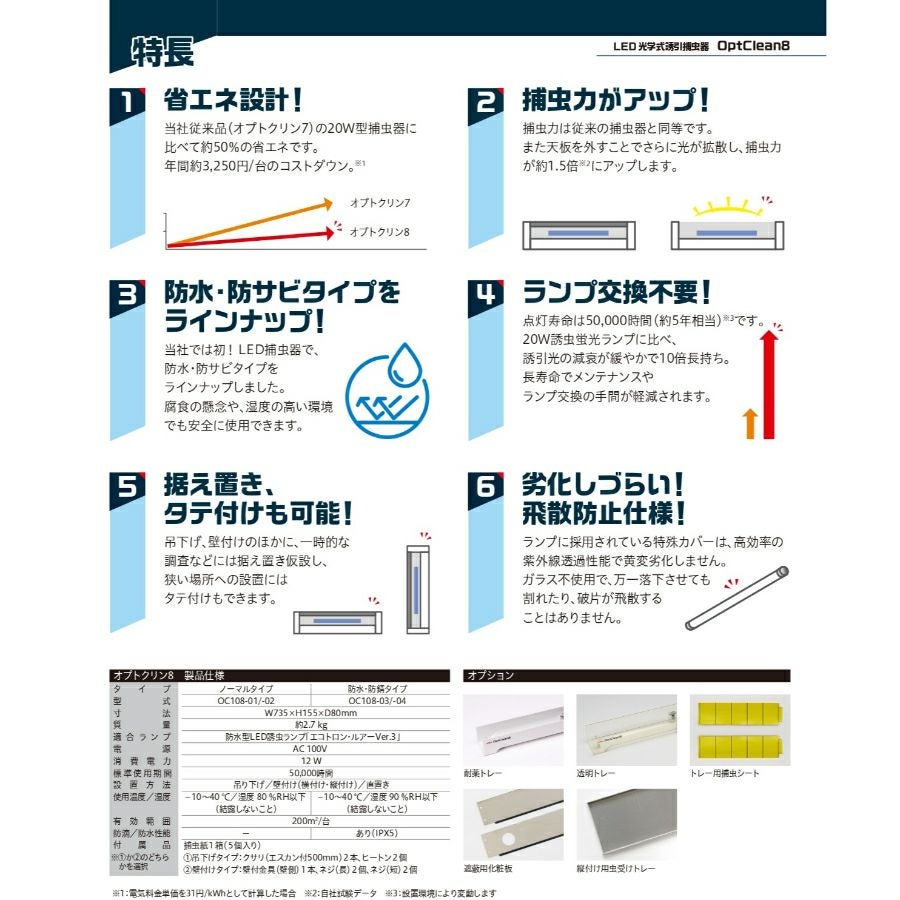 光学式誘引捕虫器 オプトクリン8(LED)壁付タイプ OC-108-02