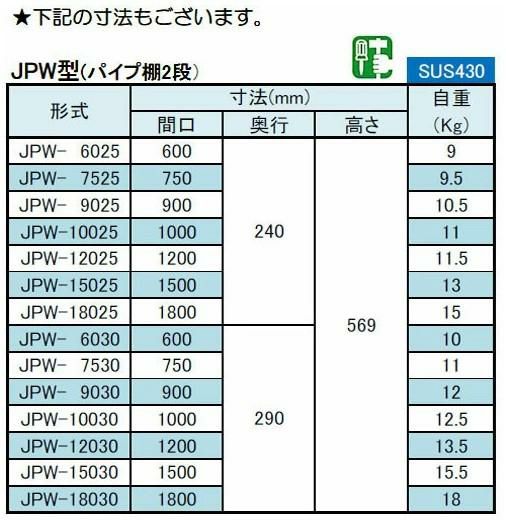【シンコー】吊下棚2段 パイプ 幅1800×奥行290×高さ569 [JPW-18030]