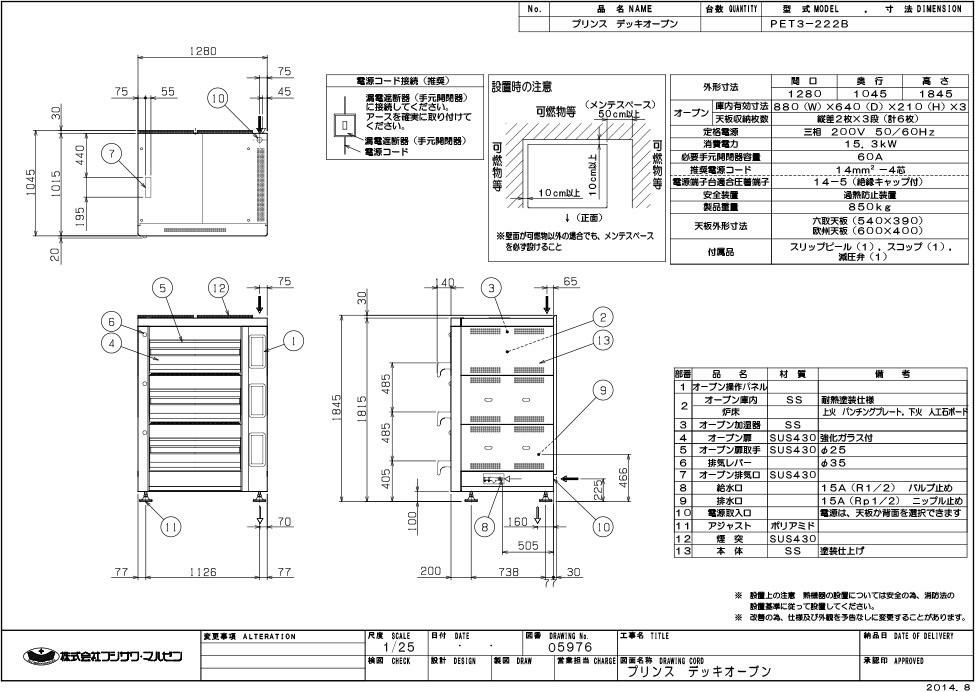 【マルゼン】デッキオーブン プリンス PET3-222B 三相200V