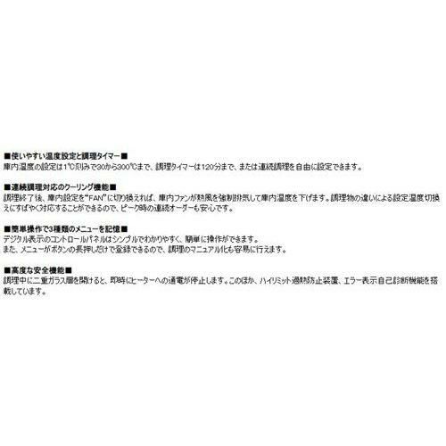 調理終了後、庫内設定を“FAN”に切り換えれば、庫内ファンが熱風を強制排気して庫内温度を下げます。調理物の違いによる設定温度切換えにすばやく対応することができるので、ピーク時の連続オーダーも安心です。