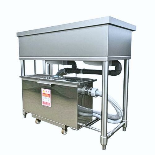 グリストラップが一体となったシンクです。 埋設工事が不要で初期費用を大幅に軽減することが出来ます。 ゴーストレストランやキッチンカー、厨房の狭い雑居ビルなどに最適です。 グリストラップ部はキャスター付、引き出し可能なので掃除がしやすい構造です。 オプションでシンク蓋など追加可能、片側の槽を作業場所にも出来ます。