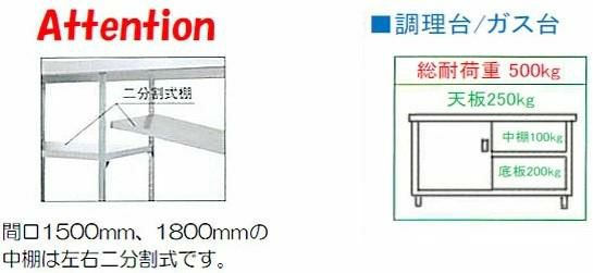 間口1500、1800の中棚は左右二分割式棚です。
