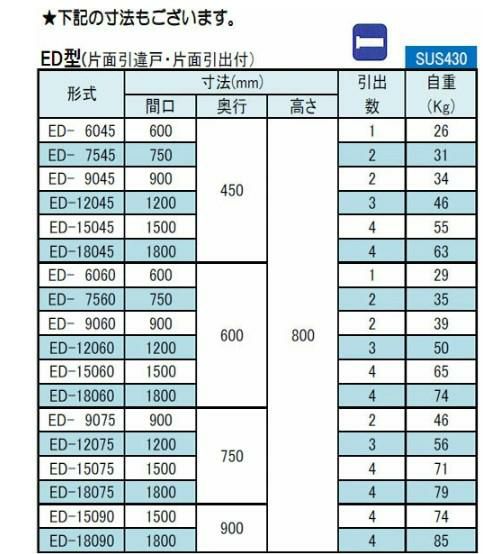 | サイズ | 幅750×奥行450×高さ800 [ED-7545] |